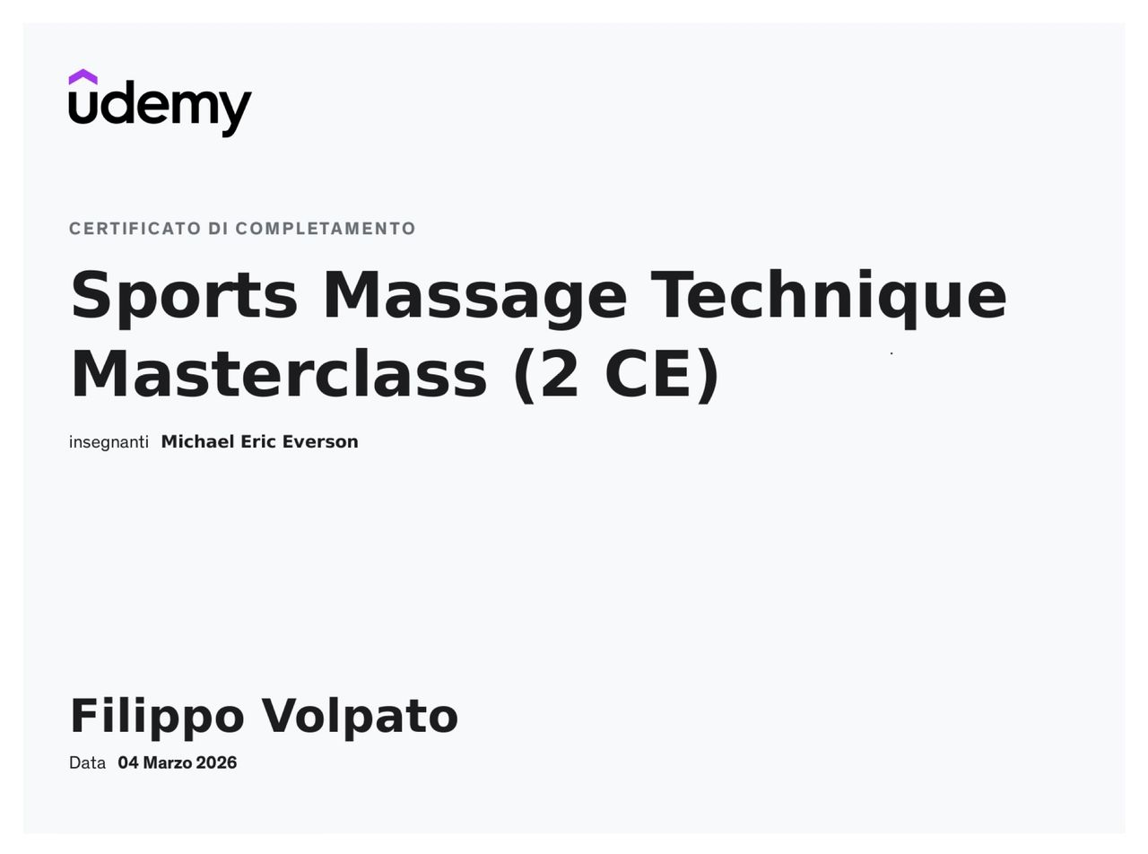Questa varietà di esperienze mi consente oggi di avere una conoscenza pratica e diretta di numerosi sport, permettendomi di comprendere in modo concreto le richieste dell’atleta e di gestire con precisione le sue esigenze, sia in ambito preventivo che performativo o riabilitativo.