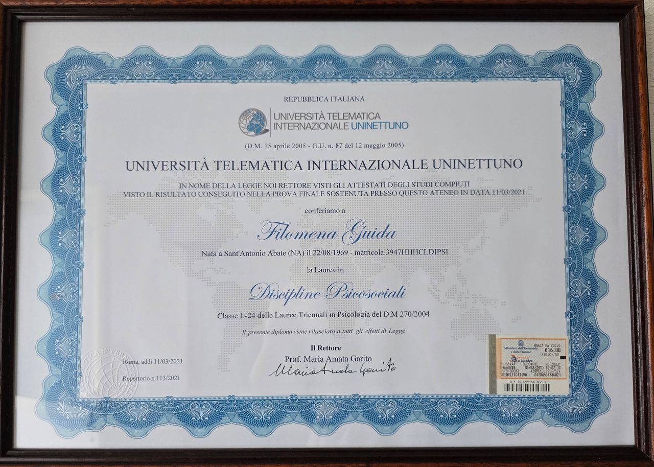 Sono Filomena Guida, psicologa. Mi occupo di supporto psicologico per ansia, stress, difficoltà emotive, autostima e problematiche relazionali, rivolto ad adulti e giovani adulti.