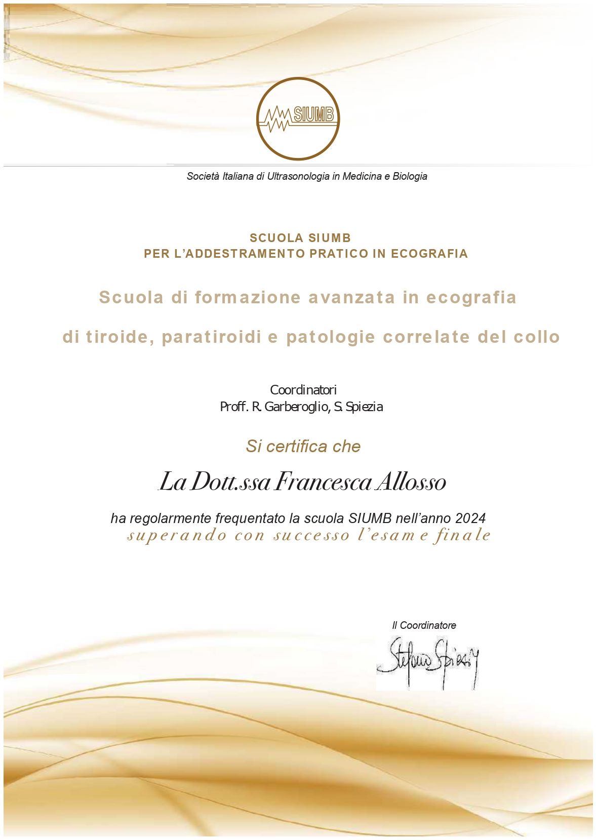 Visita ed ecografia tiroidea impeccabili: la Dott.ssa Allosso è empatica, scrupolosa, attenta e professionale.