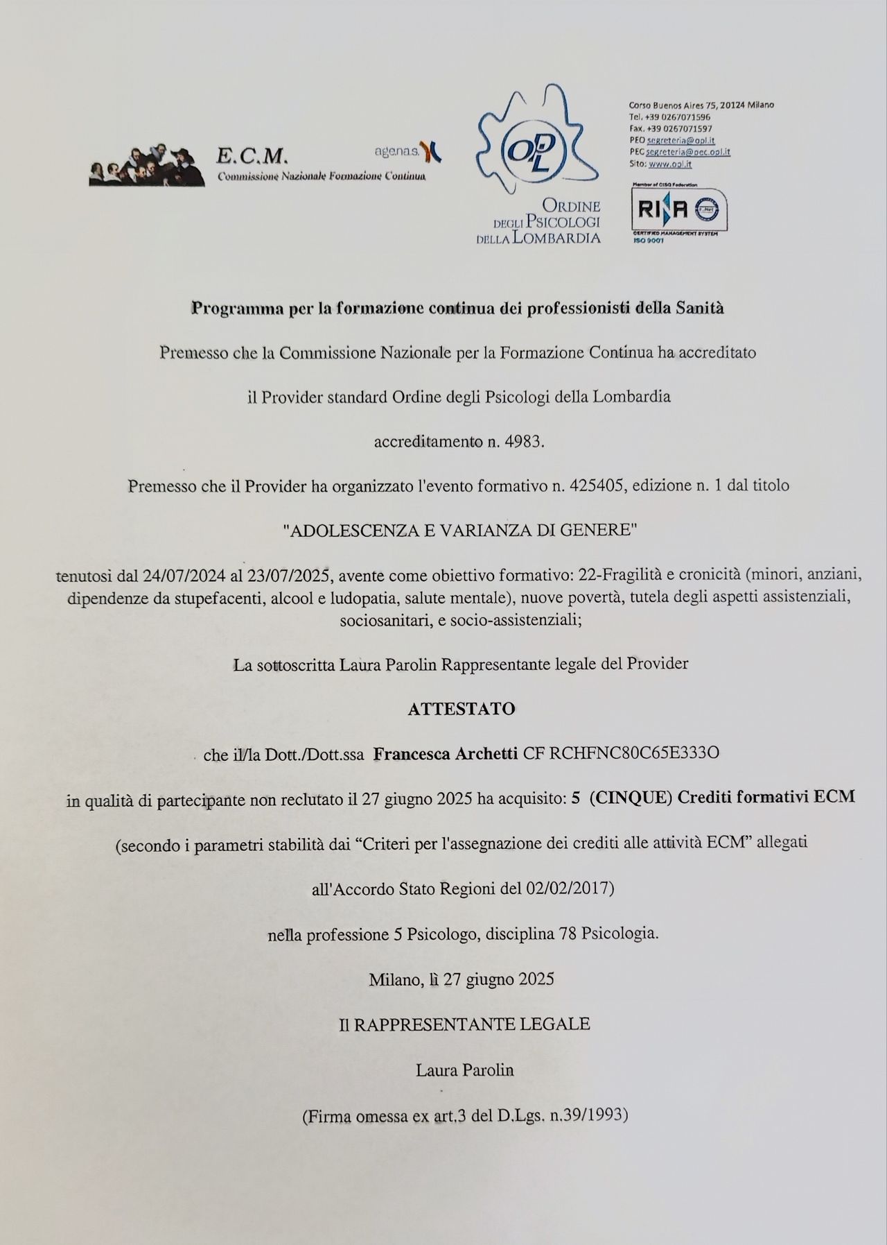 Mi sono rivolto alla dr.saa Archetti ed è stata la decisione migliore; professionale, competente e disponibile. La consiglio a tutti.