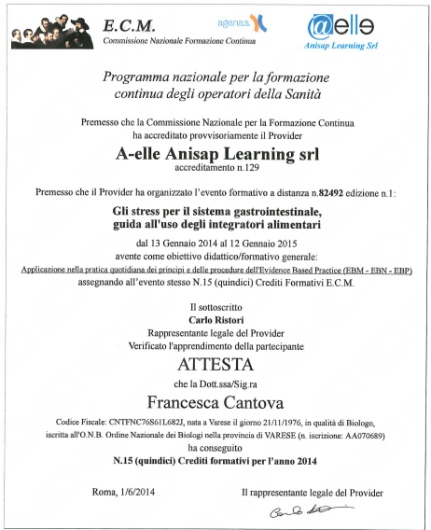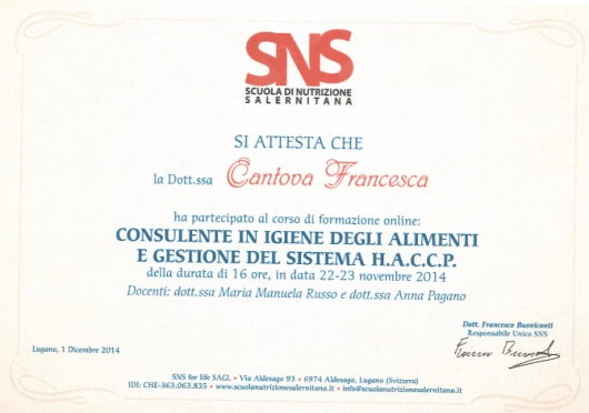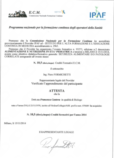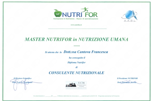 Biologa Nutrizionista - Master in alimentazione e nutrizione umana