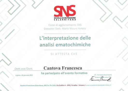 Nutrizionista Francesca Cantova stata per me e per la mia figlia disabile una dei medici preferiti e così sia fin ora ..noi stiamo soddisfatti tanto. Ci conosciamo da 6 anni...dopo 6 anni ripresi di nuovo. Valutazione da 1-10 per noi e un ,,10,,