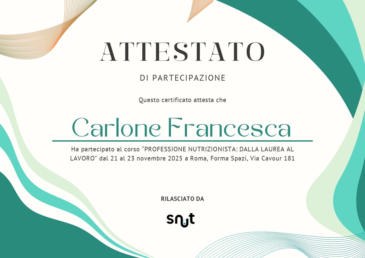 Dottoressa Francesca, fin dal primo incontro mi ha fatta sentire capita e accolta. Ha compreso subito le mie esigenze e la mia storia un po’ complessa con il cibo, dimostrando grande sensibilità e professionalità. È sempre stata attenta al linguaggio e a farmi sentire a mio agio. Un percorso che mi sta davvero aiutando a trovare un equilibrio con il cibo e la vita quotidiana.