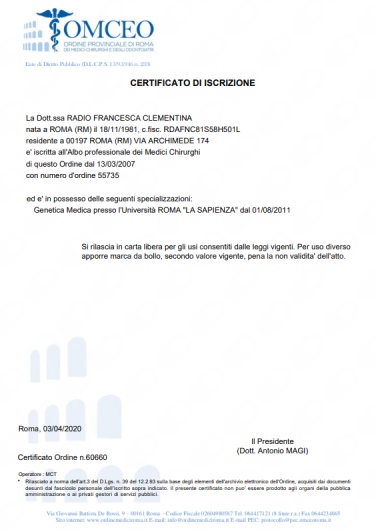 Resp. UOS Genetica Clinica, A.O. San Camillo-ForlaLaureata presso Università di Roma La SapienzaPiù di 20 anni di esperienza