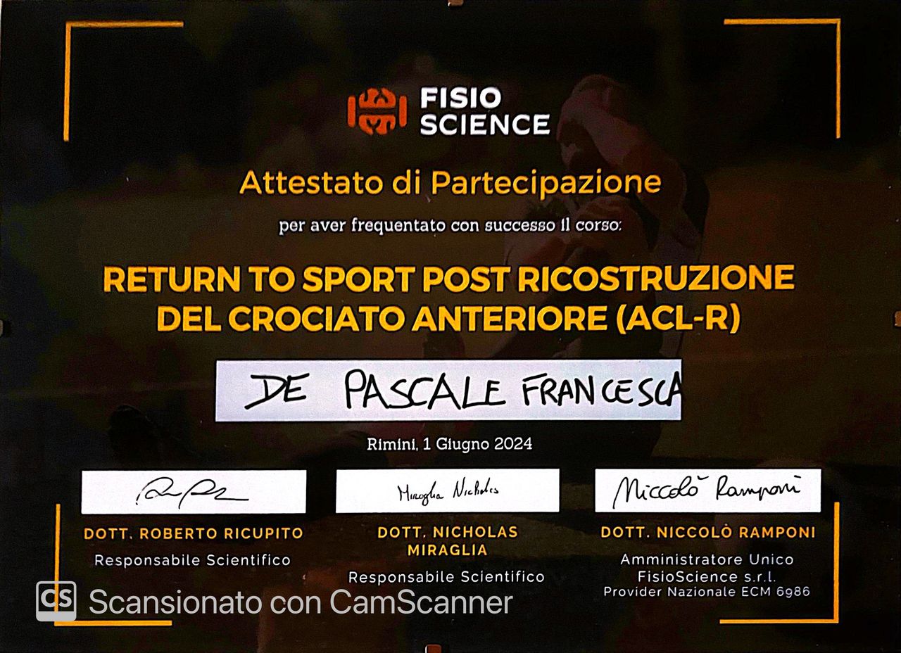 - Return to Sport post ricostruzione del legamento crociato anteriore (Fisioscience)