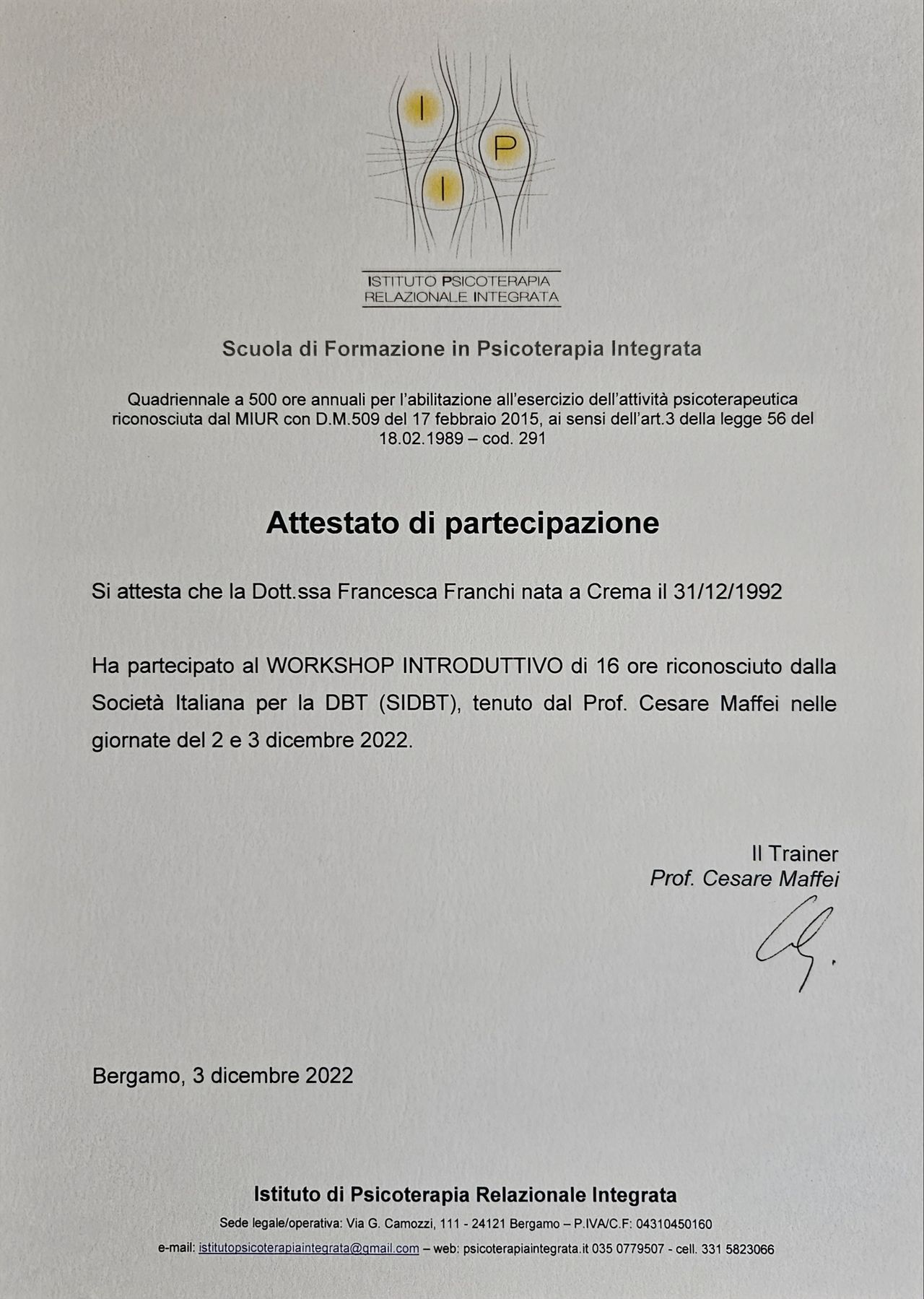 Voglio esprimere la mia più sincera gratitudine e apprezzamento per il lavoro straordinario svolto con la dottoressa Francesca.