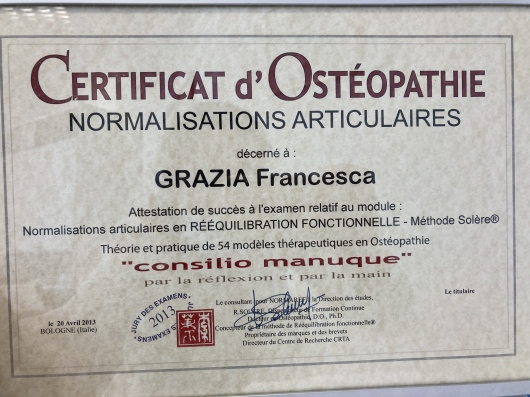 Trovare la dottoressa Francesca Grazia è stato come un punto di svolta e di riinizio per il mio fisico. Ogni volta che vado è in grado di sistemare e/o migliorare ogni cosa che "non va" e già dopo la prima seduta ero riuscita a ricominciare ad allenarmi e a muovermi molto più facilmente. È sempre molto disponibile, attenta e ti fa sentire ascoltata/o e a tuo agio. Apprezzo molto anche il fatto che di ogni trattamento ti racconta esattamente cosa andrà a fare e/o ti spiega come funziona il macchinario, che effetto avrà e tutto ciò che serve sapere. Molto professionale, la consiglierei a chiunque.