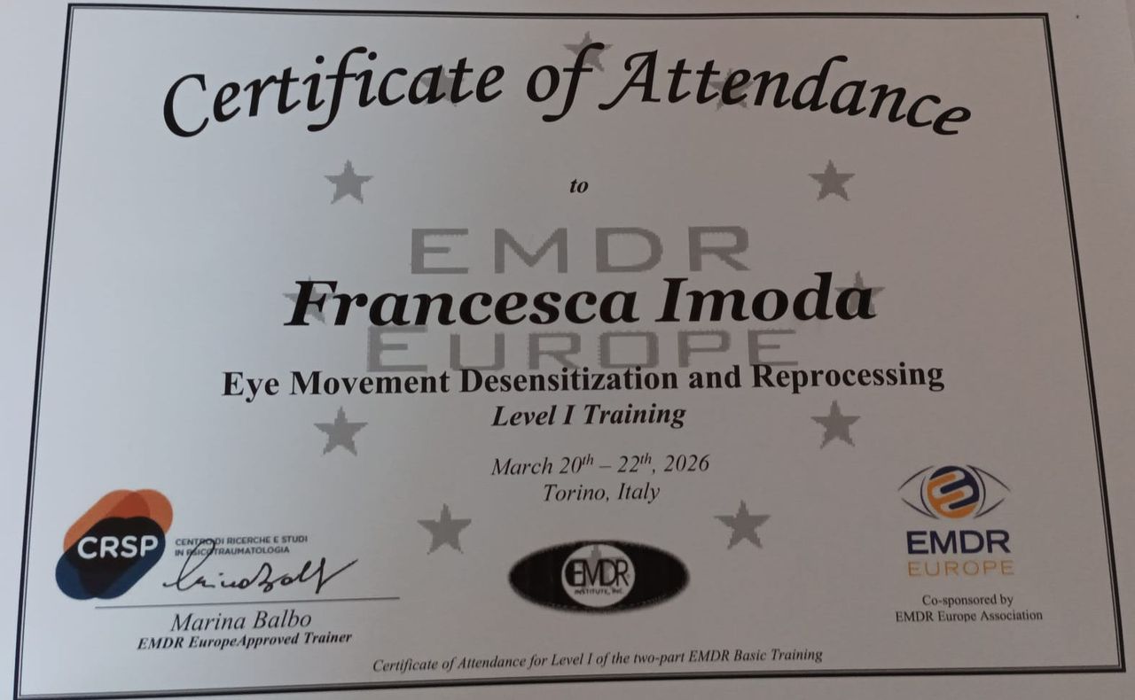 Professionista seria e competente! Con la dottoressa Imoda mi sono sentito subito accolto e compreso... è stata una terapia arricchente e costruttiva che mi ha permesso di comprendere meglio alcune parti di me che conoscevo meno e ora mi sento più libero e consapevole