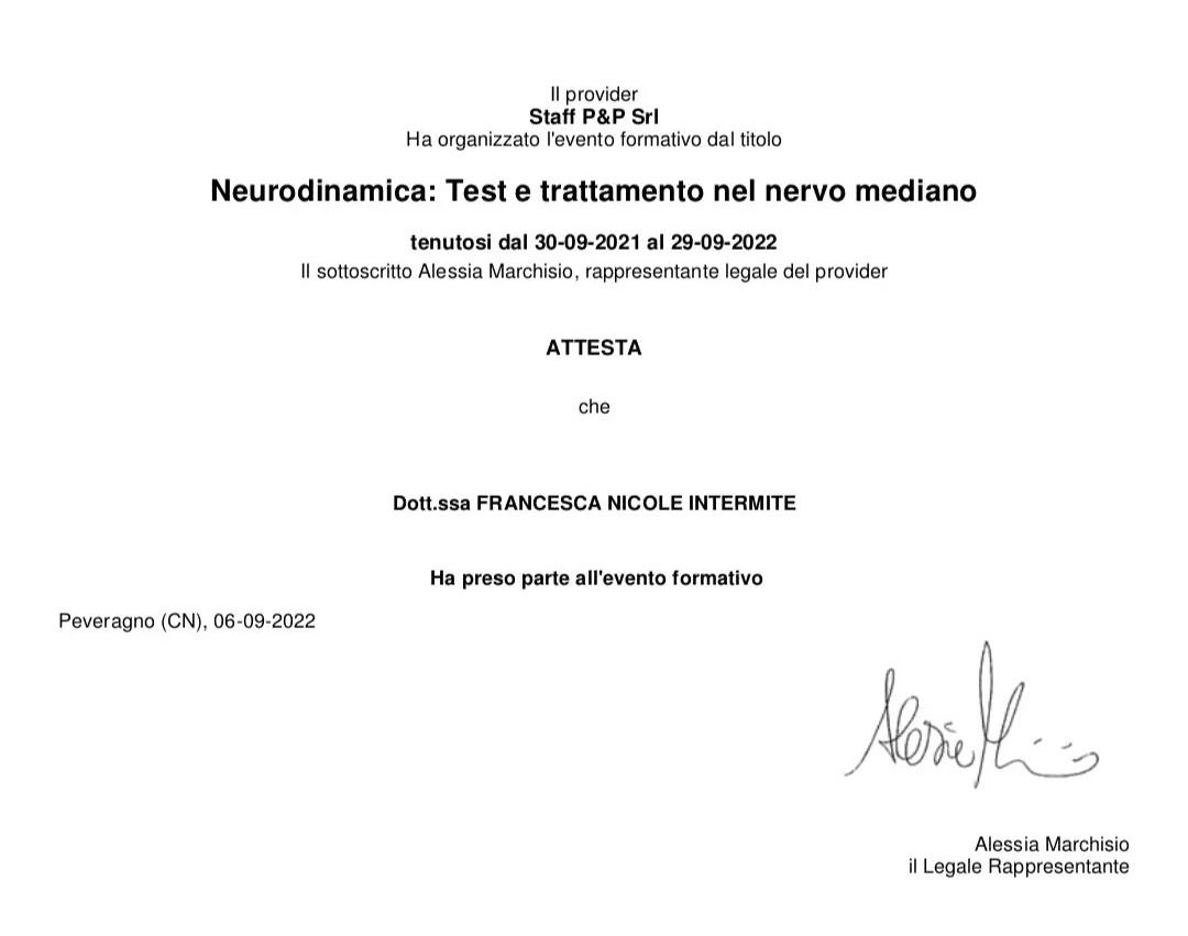 Consiglio vivamente la dottoressa Intermite a chi cerca un supporto serio e competente per problemi muscolari, articolari o posturali.