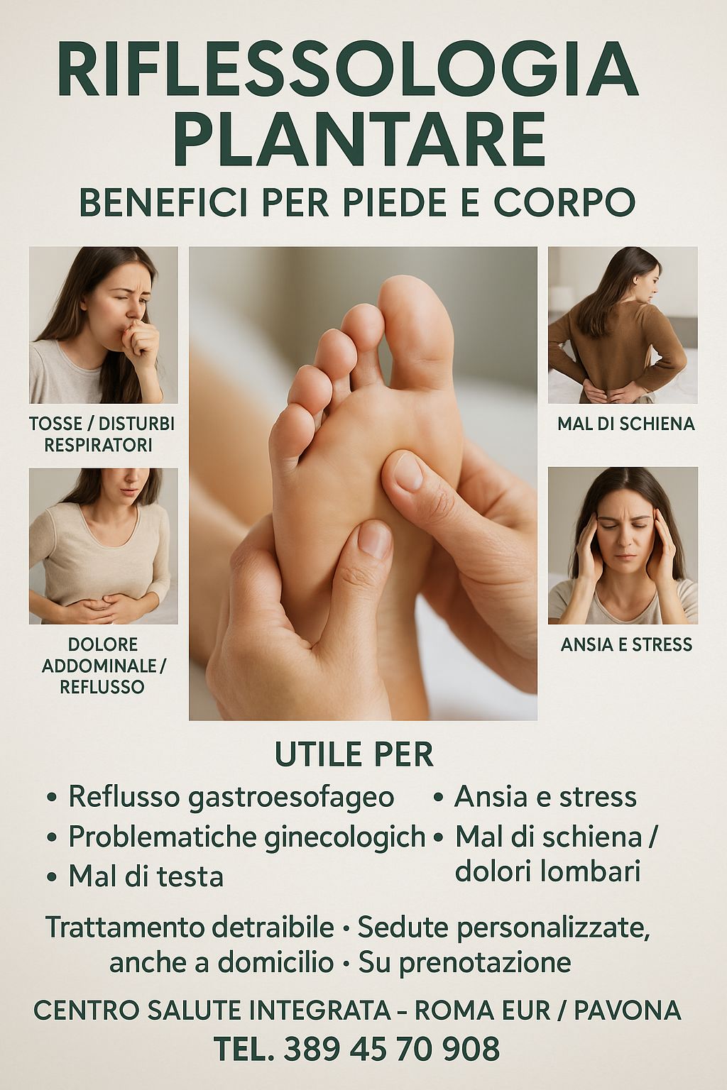 vorrei sottoporre alla Sua attenzione l’interesse verso la riflessologia plantare, una pratica di medicina complementare che agisce attraverso la stimolazione di specifici punti del piede, i quali corrispondono energeticamente a organi e apparati del corpo umano.