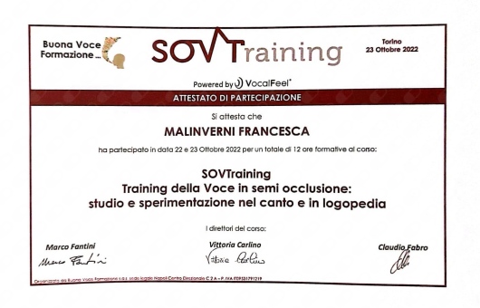 Ho affinato competenze specialistiche come la valutazione e il trattamento di disfagia orofaringea, disfonie (disfunzionali e organiche), disartria, afasia, e disturbi di linguaggio in età evolutiva. Mi occupo inoltre di problematiche legate alla fluenza verbale, agli apprendimenti curricolari e alla deglutizione disfunzionale associata a SMOF.