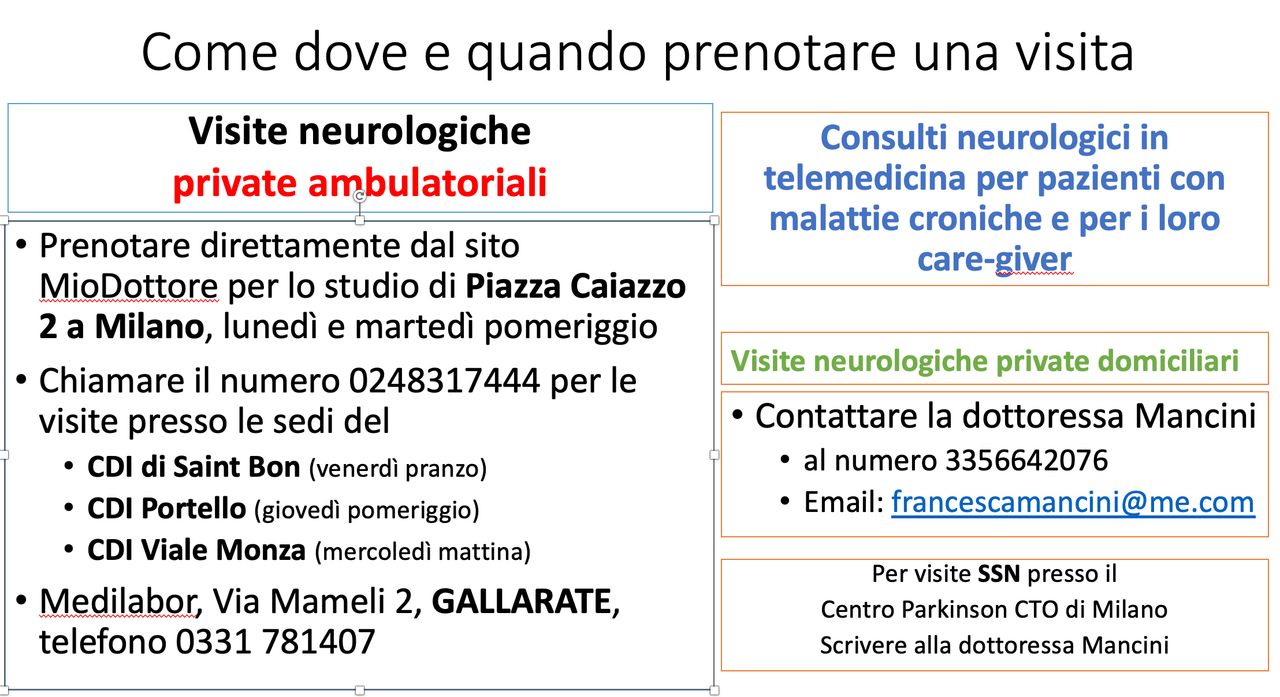 Consulti neurologici in telemedicina: Per pazienti con malattie croniche e i loro caregiver, contatta la Dott.ssa Mancini al 3356642076 o via email: francescamancini@me.com.