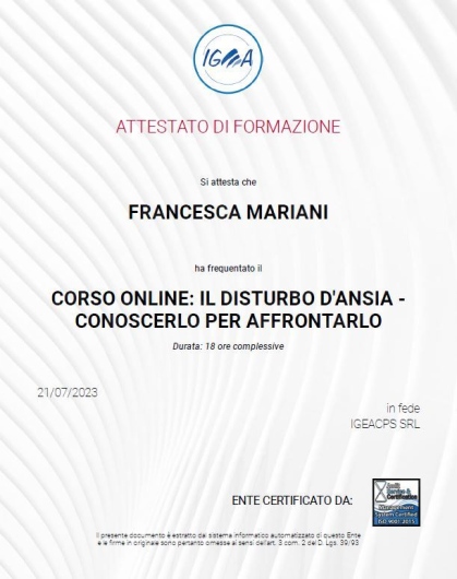 Il mio percorso con la Dott.ssa Mariani è iniziato quasi quattro anni fa. Un percorso che sin dall'inizio ha posto le basi per un'ottima relazione terapeutica. Sia nelle sedute in presenza, che nelle sedute online, non sono mai venute a mancare l'empatia e l'ascolto, nonostante la "distanza".