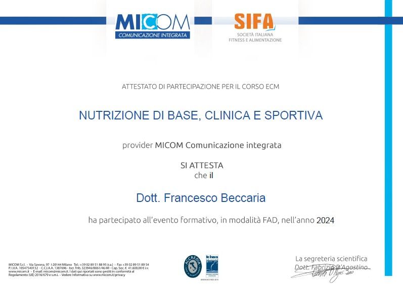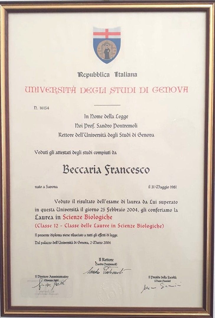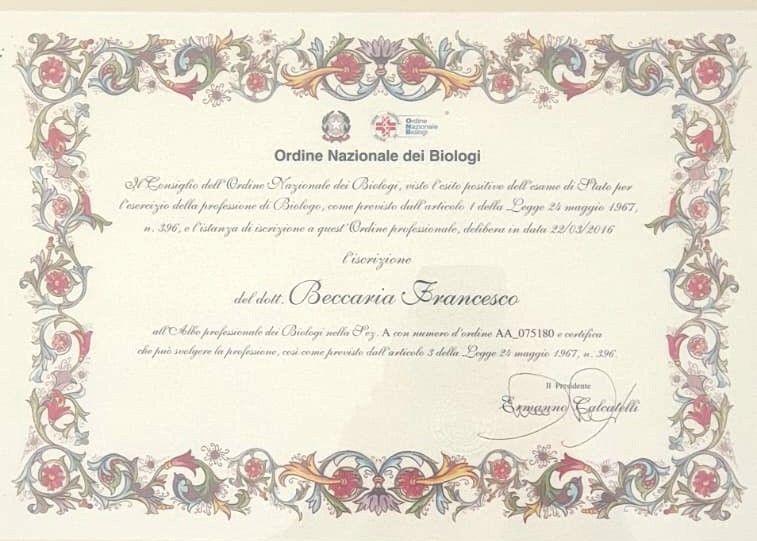 Mi chiamo Francesco Beccaria, sono biologo nutrizionista specializzato in Patologia Clinica. Il mio percorso formativo e professionale mi ha insegnato a considerare la salute come un equilibrio tra benessere interno ed esterno.