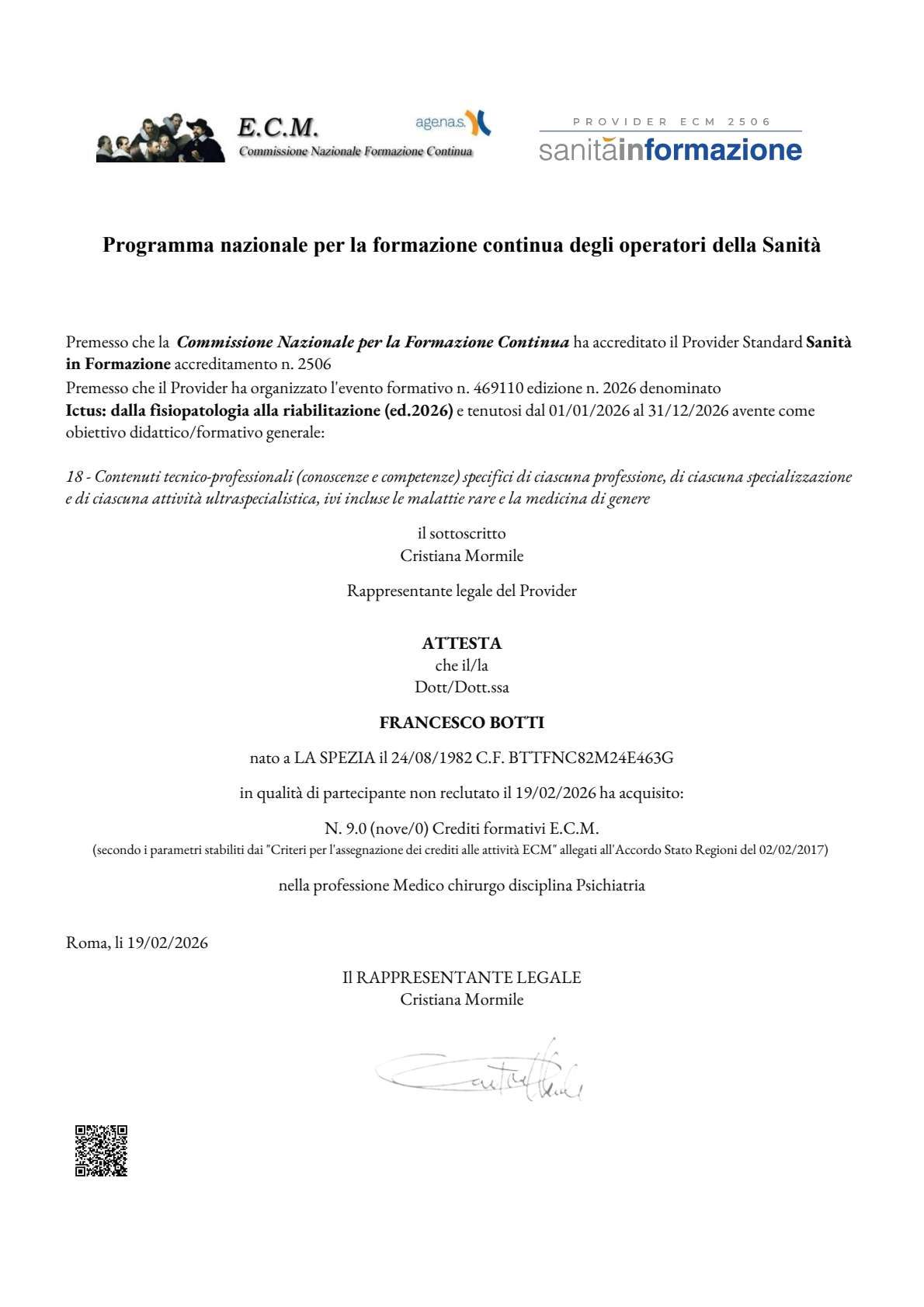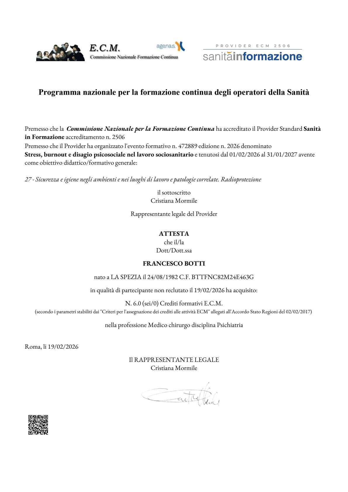 Specialista in Psichiatria e Psicoterapia