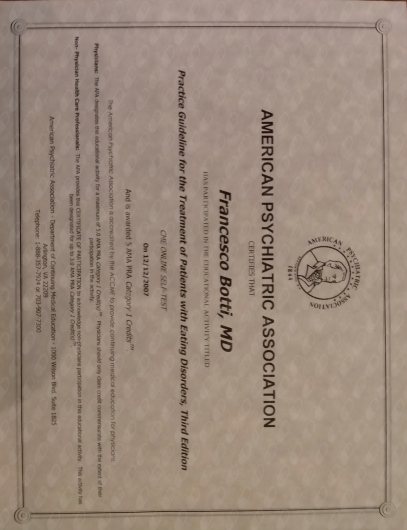 Scuola di Specializzazione Presso la Clinica Universitaria di Pisa, clinica di eccellenza a livello mondiale per i Disturbi dell'umore. Delle tossicodipendenze. Ho trattato la grande maggioranza di disturbi psichiatrici in forma pura ( campioni selezionati con monopatologia ideali per la ricerca scientifica) nella pratica clinica reale è assai frequente la coesistenza di più disturbi.