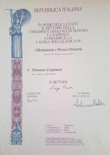 Sono laureato in Odontoiatria e Protesi Dentaria presso l’ Università degli studi di Roma “Sapienza” ed ho ottenuto l’Abilitazione all’esercizio della professione odontoiatrica con il massimo dei voti.