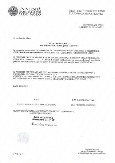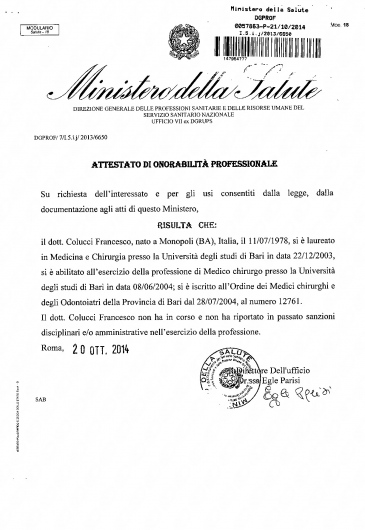 Un caro saluto ed un ringraziamento al Dottor Colucci,