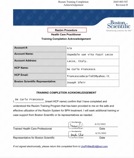 Ho seguito, durante la fase di formazione, un corso per l'esecuzione di Biopsie Prostatiche Fusion.