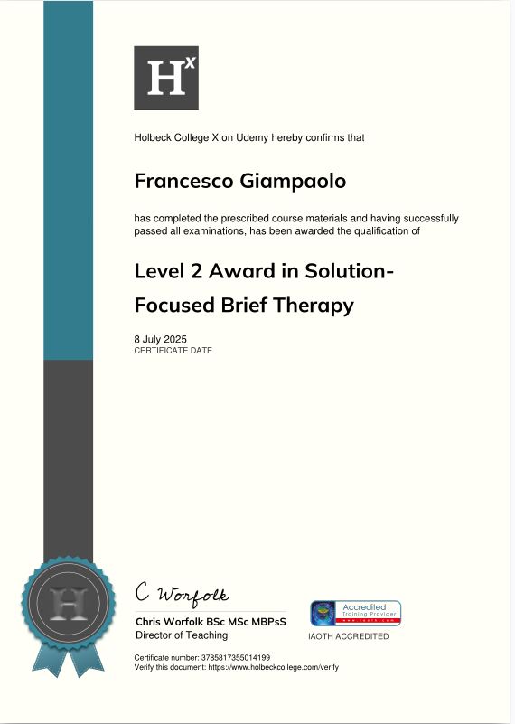 Consiglio vivamente Francesco a chiunque stia cercando un sostegno professionale autentico.• Consulenza online • •