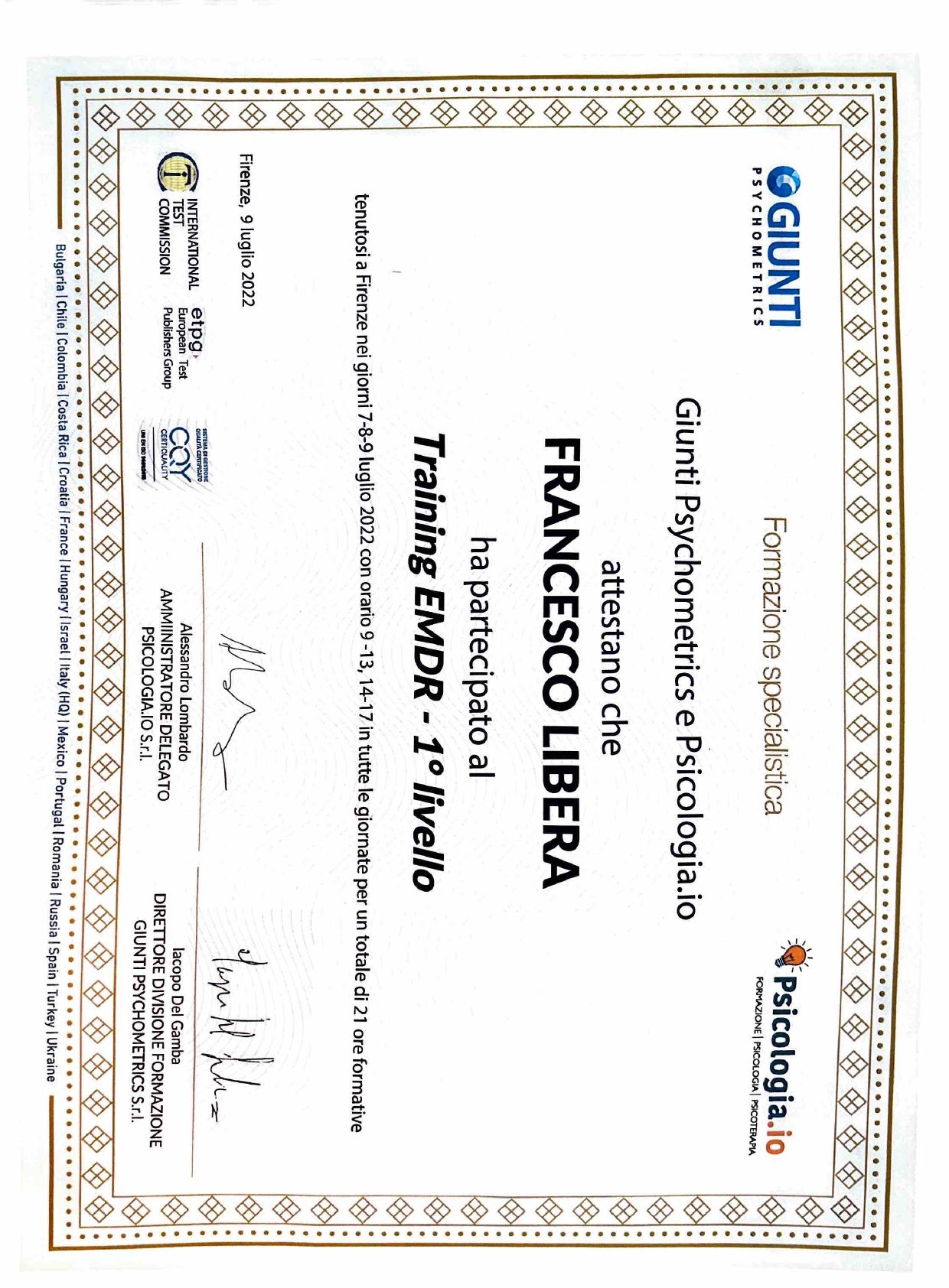 My name is Francesco Libera. I am a psychologist and a cognitive-behavioral psychotherapist in training. I support people through moments of difficulty, change, and personal growth they might be facing.
