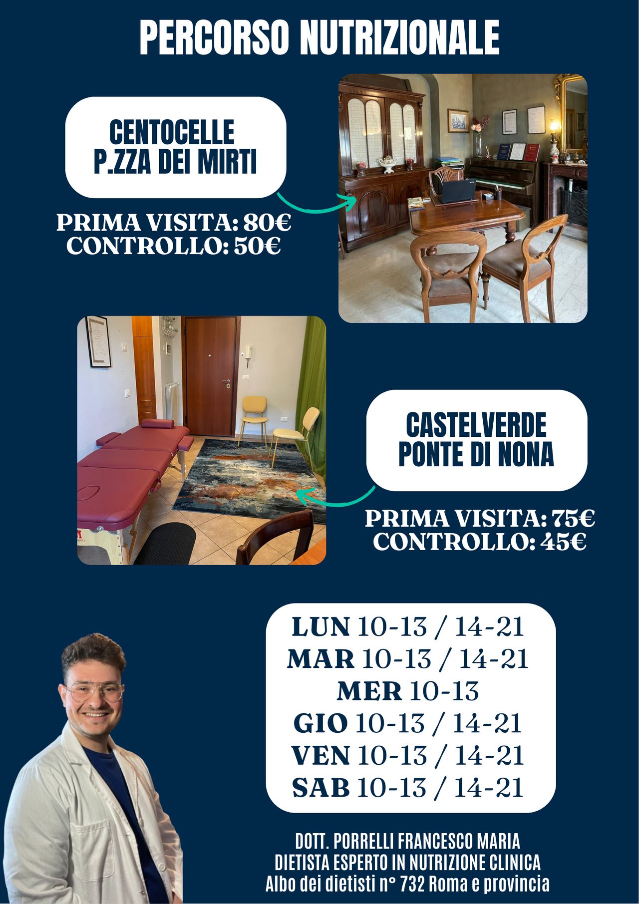 Benvenuto! Sono il dott. Porrelli Francesco Maria, dietista nutrizionista esperto di nutrizione clinica. Il mio percorso professionale nasce dalla convinzione che ogni persona sia unica e che la dietoterapia debba essere costruita su misura, come un abito sartoriale, rispettando la storia personale, lo stile di vita e le esigenze individuali.