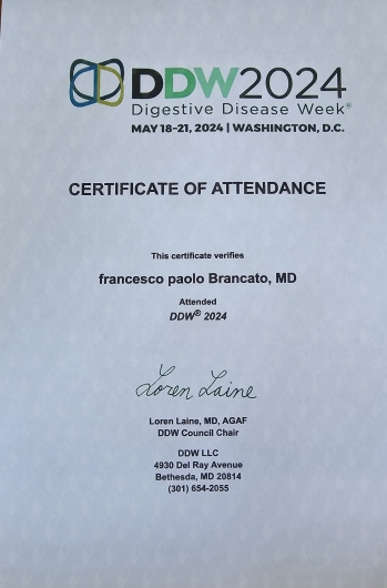 Ho partecipato a numerosi corsi e convegni in Italia ed all'estero nel campo della Gastroenterologia e dell'Endoscopia, dell’Epatologia e della Medicina Interna.