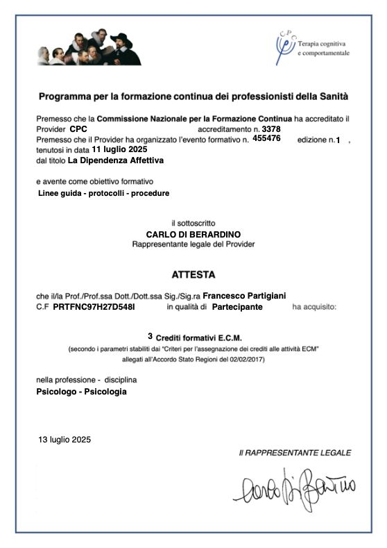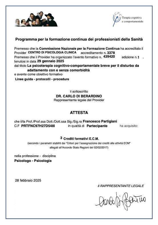 Sono uno Psicologo, specializzando in Psicoterapia Cognitivo-Comportamentale.