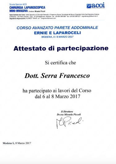 Trattiamo la patologia funzionale benigna quale la riparazione dei difetti di parete addominale che si manifestano come tumefazioni visibile sulla parete addominale note come Ernia (Inguinale, ombelicale, crurale) e di ernie insorte su pregresse cicatrici chirurgiche note con il nome di laparocele, trattabili chirurgicamente sia con tecniche tradizionali che mininvasive laparoscopiche.