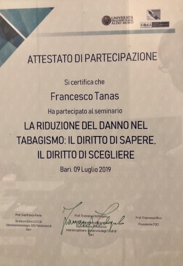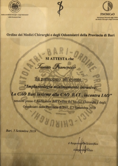 Iscritto all’Ordine dei Medici e degli Odontoiatri della provincia di Bari.