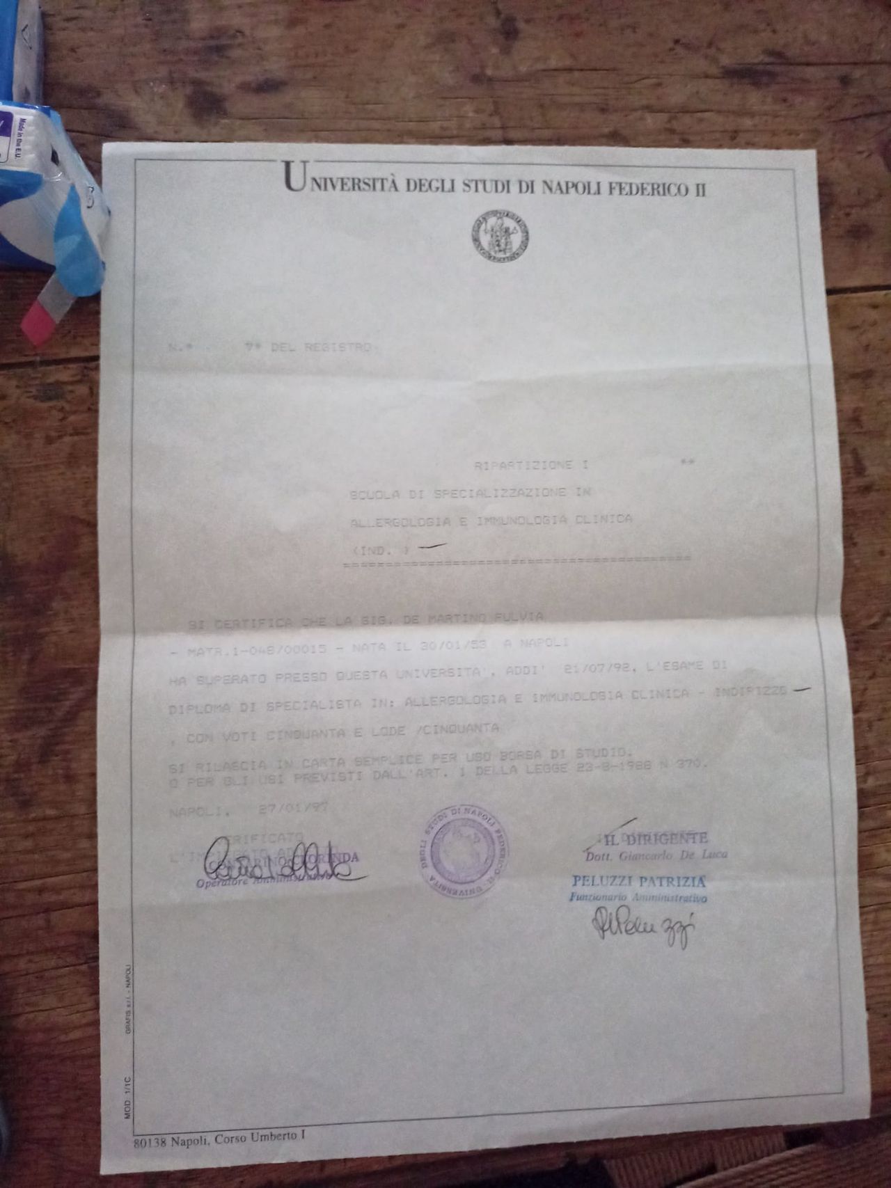 Ho contattato la dr.ssa Fulvia De Martino tre anni fa, su indicazione di una giovane amica, specializzata in allergologia che era stata sua allieva al policlinico di Napoli, entusiasta della sua preparazione e disponibilità .