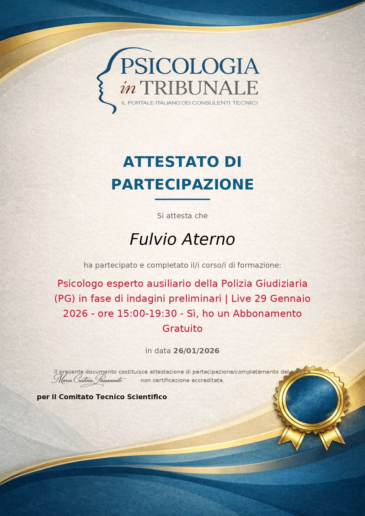 La mia formazione in ambito clinico e forense mi consente di integrare un approccio psicologico attento alla persona con una visione oggettiva e metodologicamente rigorosa, utile sia nei percorsi di crescita personale che nelle valutazioni in contesto giudiziario.
