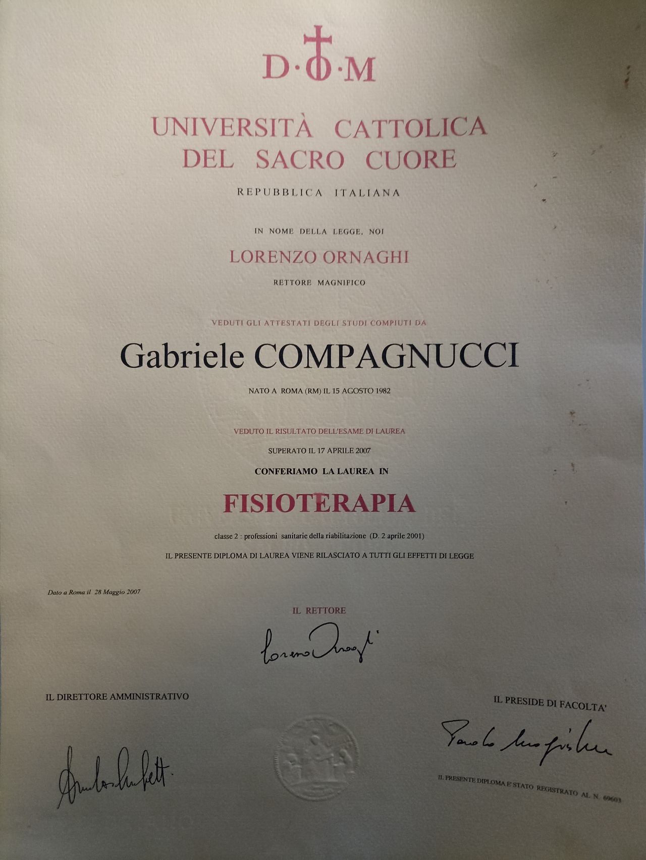 Sono fisioterapista dal 2007, laurea conseguita presso l'università cattolica del Sacro Cuore di Roma. In questi anni ho lavorato in diverse realtà professionali e riabilitative, sono partito dalla collaborazione con centri convenzionati col SSN, ho lavorato in cooperativa per assistenza domiciliare in convenzione ASL, ho collaborato con vari studi privati, ho anche esperienza in RSA e case di riposo.