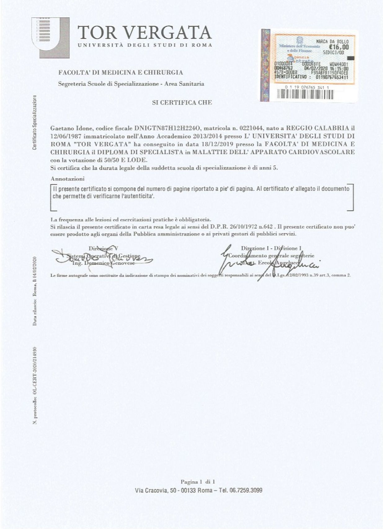 Sono il Dr. Gaetano Idone, Cardiologo e Dirigente Medico presso il Policlinico Universitario di Roma Tor Vergata. Mi occupo della prevenzione, diagnosi e trattamento delle principali patologie cardiovascolari, tra cui malattie delle valvole cardiache, scompenso cardiaco, cardiopatia ischemica, ipercolesterolemia, ipertensione arteriosa e aritmie.