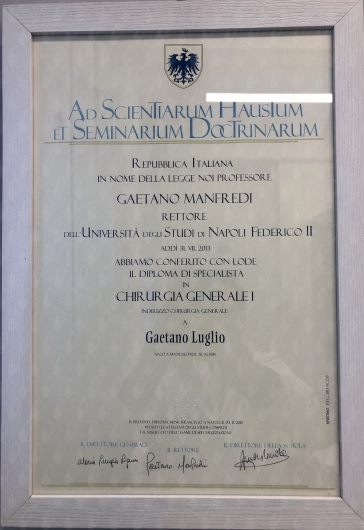 • Specializzazione in Chirurgia Generale presso Università degli Sudi di Napoli “Federico II” con Lode