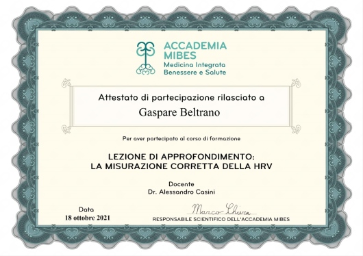 Professionista certificato HRV (Heart Rate Variability) Gestione dello stress e del sonno.