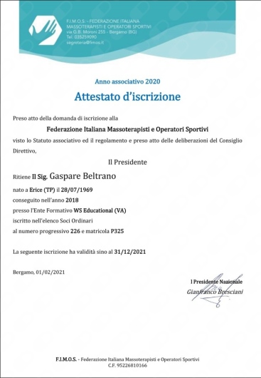 Mi sono rivolto al Dott.Gaspare Beltrano per dei fastidi posturali che da tempo influenzavano la mia quotidianità. Con professionalità, competenza e un approccio davvero attento, ha individuato la causa del problema e impostato un percorso efficace. Fin dalle prime sedute ho notato miglioramenti significativi. Consiglio vivamente a chi cerca un aiuto concreto e personalizzato.