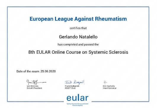 Oltre all’impegno clinico e assistenziale ho avuto modo di portare avanti l’attività di ricerca presentando personalmente oltre venti abstract in conferenze nazionali e internazionali, con premi e riconoscimenti da parte della World Scleroderma Foundation, della Società Italiana di Gastro-Reumatologia, della Società Italiana di Reumatologia e della Foundation for Research in Rheumatology e pubblicando come autore e co-autore oltre 20 lavori scientifici in riviste peer-reviewed e trattati.