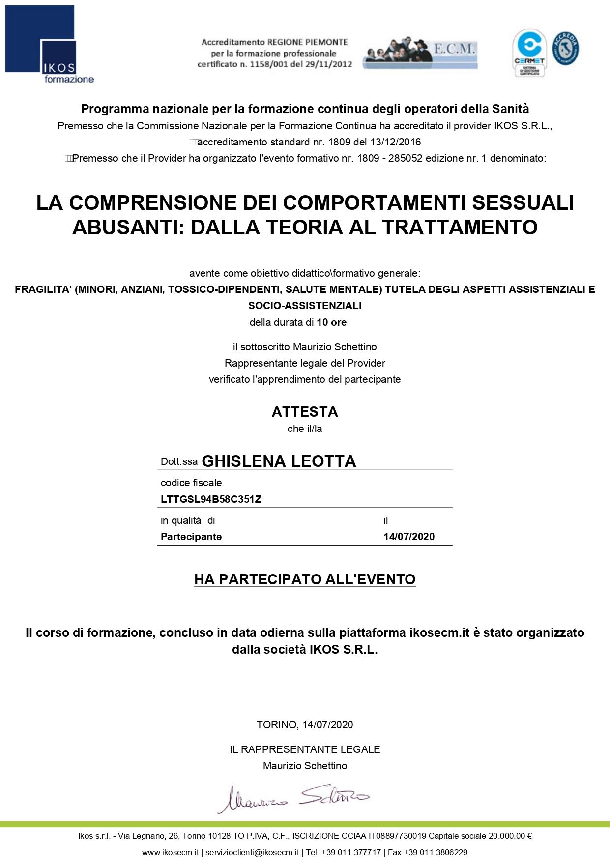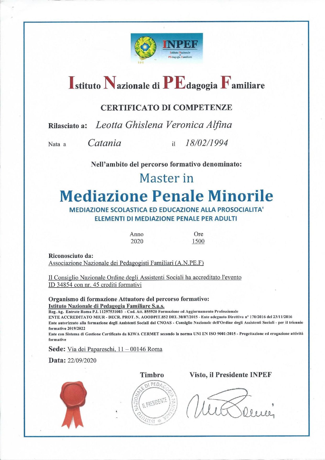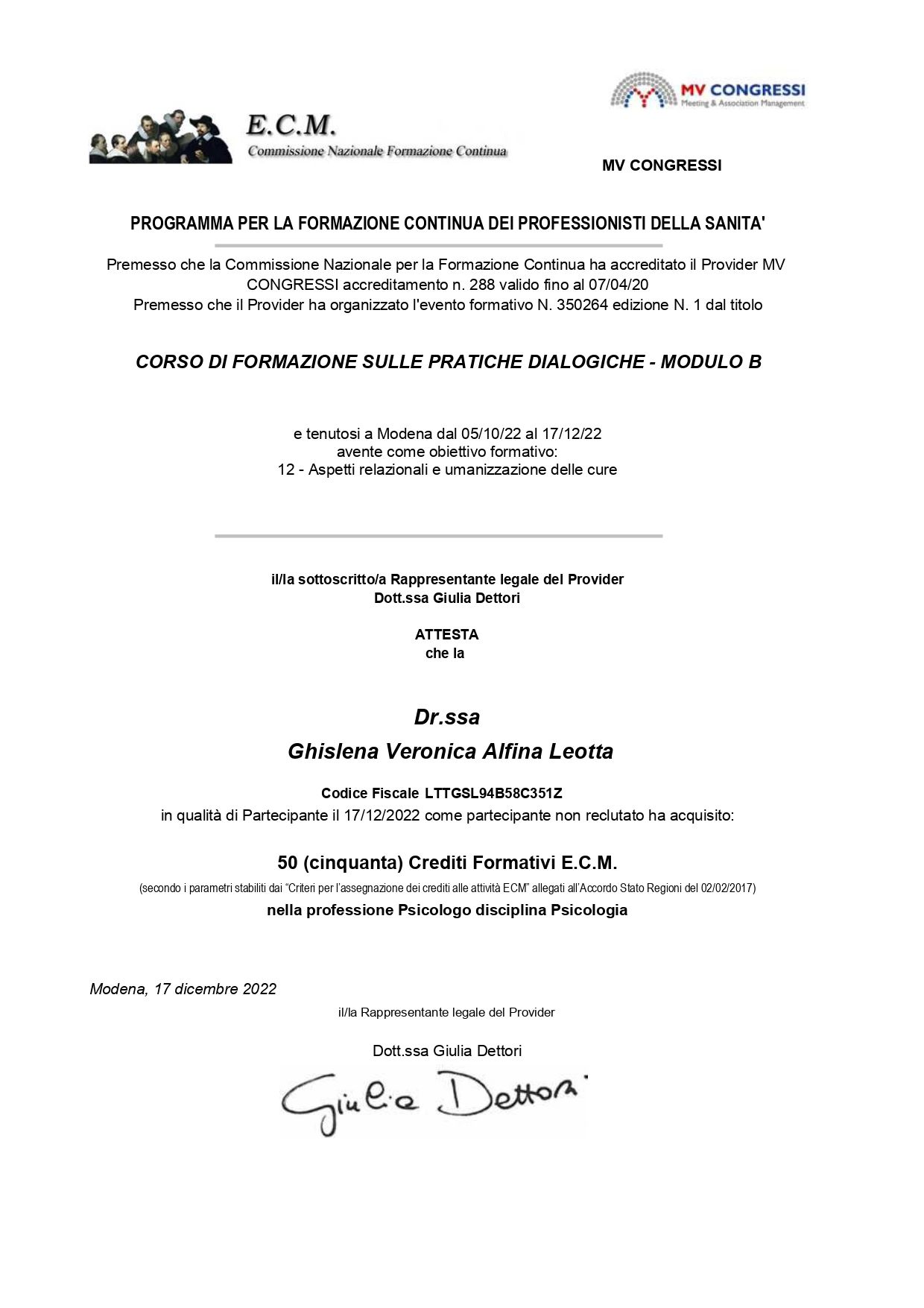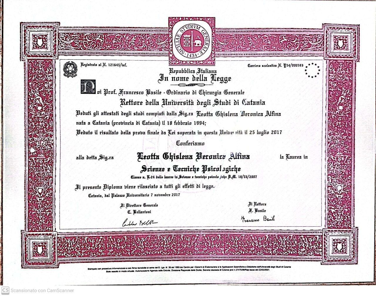 La Dottoressa Leotta si è mostrata sin dal primo momento una professionista sotto ogni aspetto. La sua infinita umanità, gentilezza ma sopratutto forte empatia con il suo interlocutore, fanno di lei una grande professionista, ma sopratutto fa la differenza. È precisa, attenta e disponibile senza mai trascurare un singolo dettaglio. Oserei dire, eccellente!! Svolge la professione con passione, dedizione e meticolositá . Sin dal primo momento, riesce ad instaurare un rapporto di fiducia e comprensione.