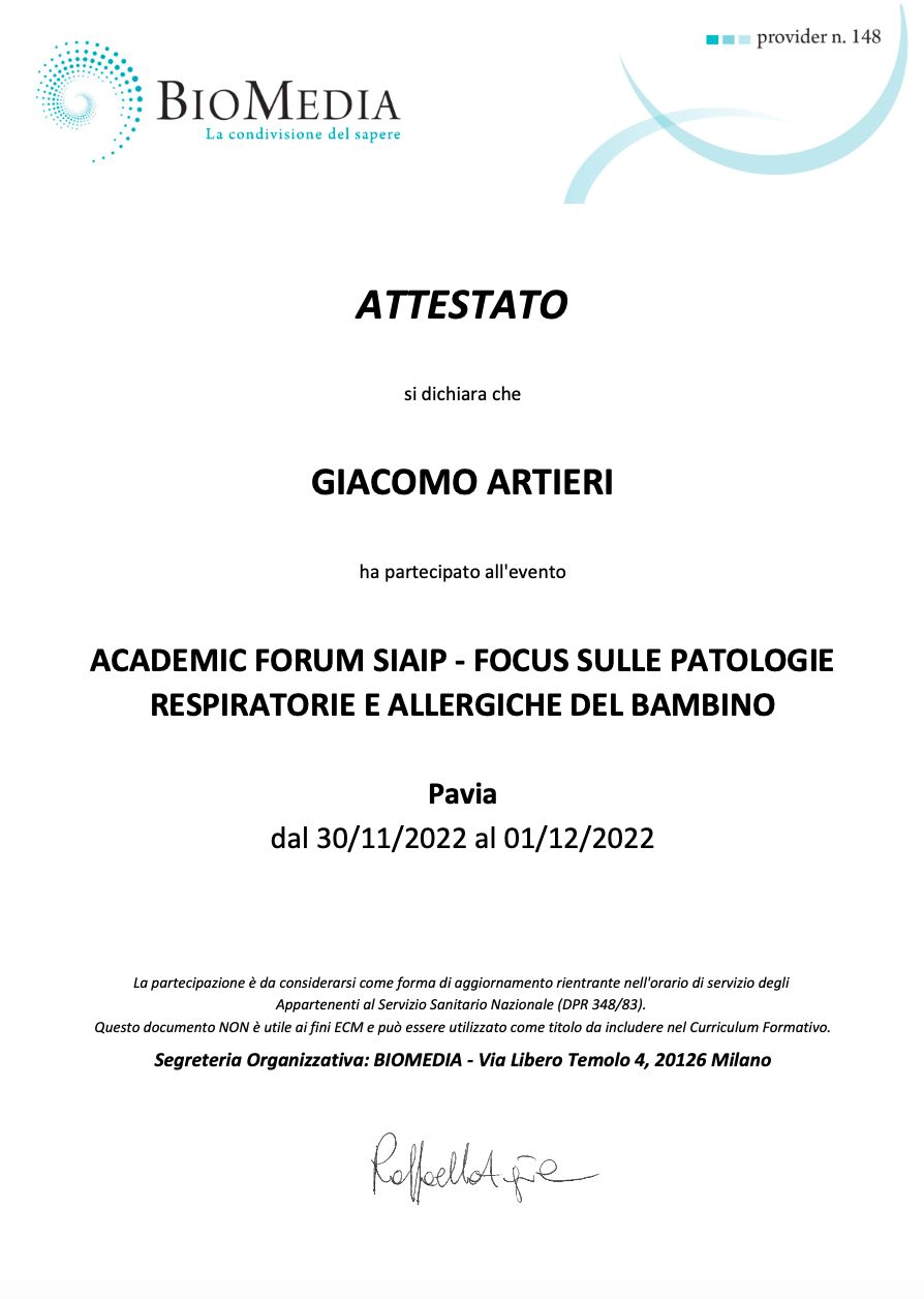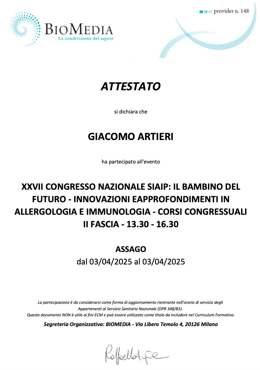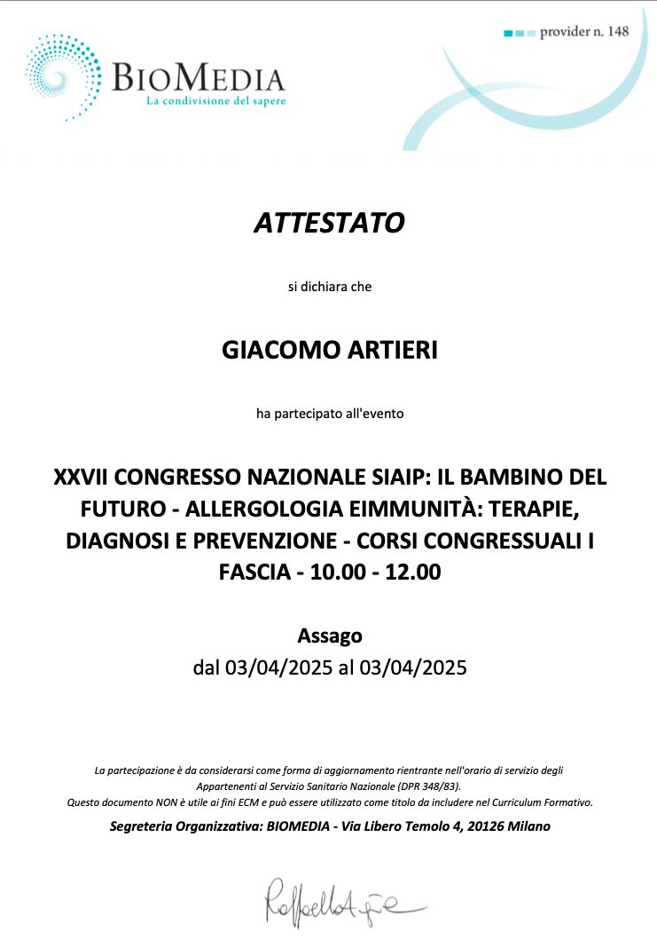 Successivamente ho completato un Master di II livello in Allergologia Pediatrica presso l’Università degli Studi di Pavia.