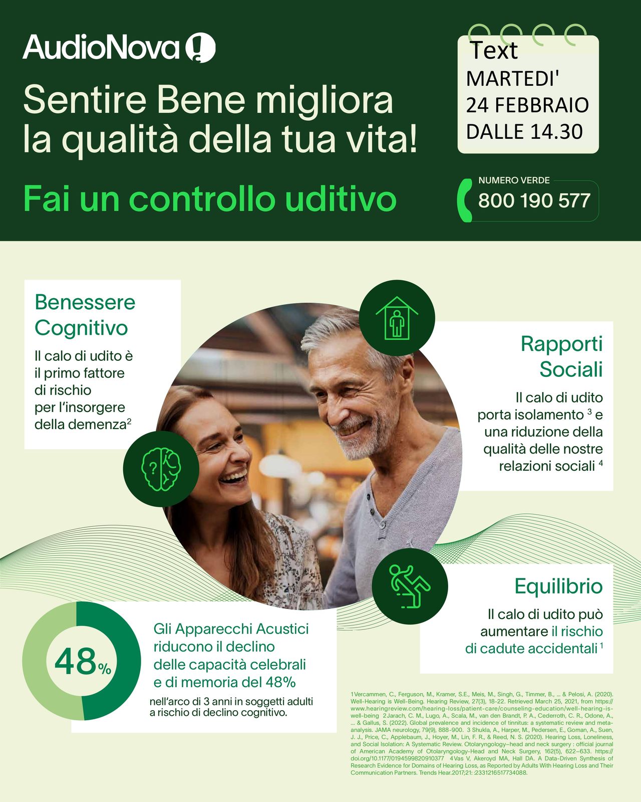 MARTEDI' 24 FEBBRAIO, presso l'ambulatorio di Settime - Frazione Meridiana 37, si terrà un evento audiometrico in collaborazione con l'azienda Audionova.