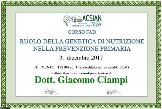 Studi genetici Nutrigenetica Nutrigenomica con relativa Epigenetica considerando sempre la situazione microbiotica, ecco di cosa si tratta questa particolare branca della Nutrizione Patologica Preventiva, attualmente il grado più alto di personalizzazione alimentare a livello internazionale, attraverso l'uso di geni certificati Gwas con valenza e certificazione scientifica internazionale, si vanno a studiare tutta una serie di metabolismi cosi da individuare l'alimentazione e stile di vita più idonei per ogni singola persona, e non più basare su medie e statistiche la propria alimentazione