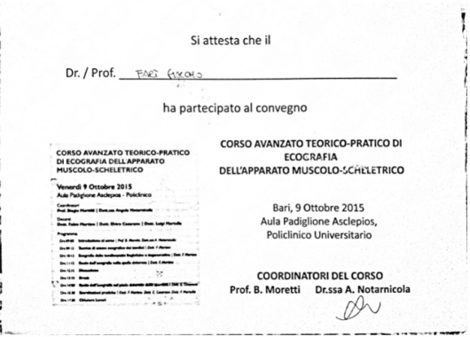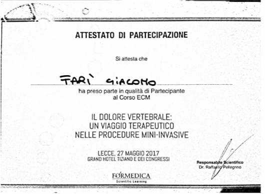 Fisiatra interventista, perfezionato in infiltrazioni ecoguidate.