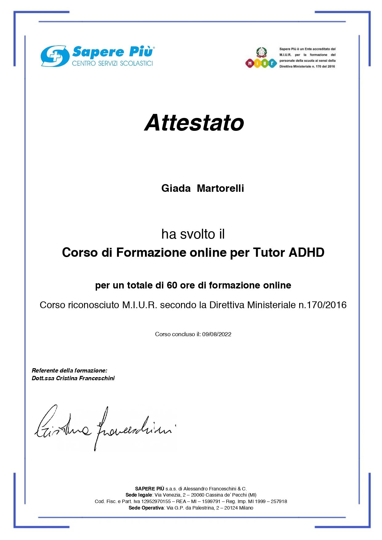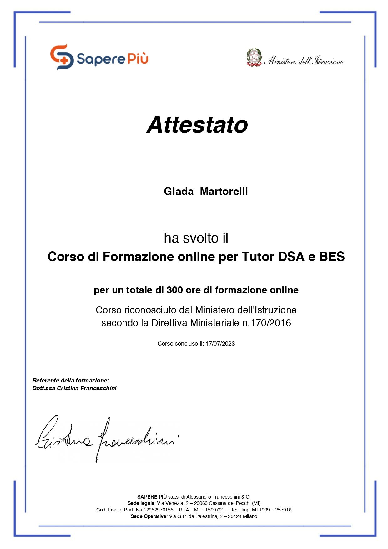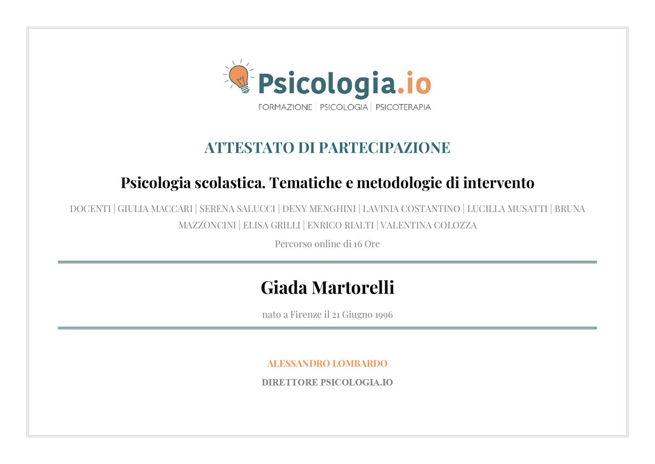 Sono la Dott.ssa Giada Martorelli, Psicologa, Tutor DSA-BES e Tutor ADHD, iscritta all'Ordine degli Psicologi della Toscana con il numero 11222.