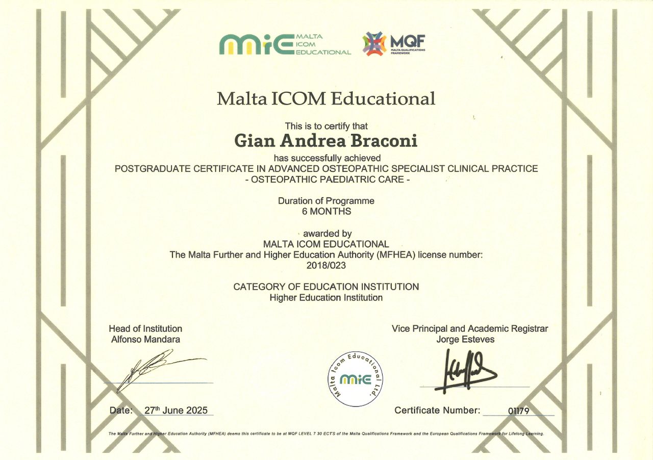 PostGraduate Certificate in Osteopatia Pediatrica.