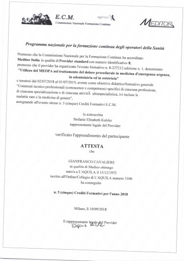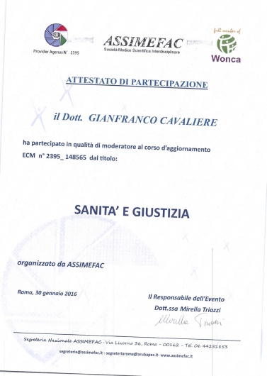 Ho conosciuto ieri il dottore Cavaliere e posso assolutamente asserire che, oltre ad essere un professionista altamente qualificato, riesce ad entrare in perfetta sintonia con il suo paziente dando sicurezza e fiducia. Sin da subito si mette a disposizione mostrando altresì una grande umanità.
