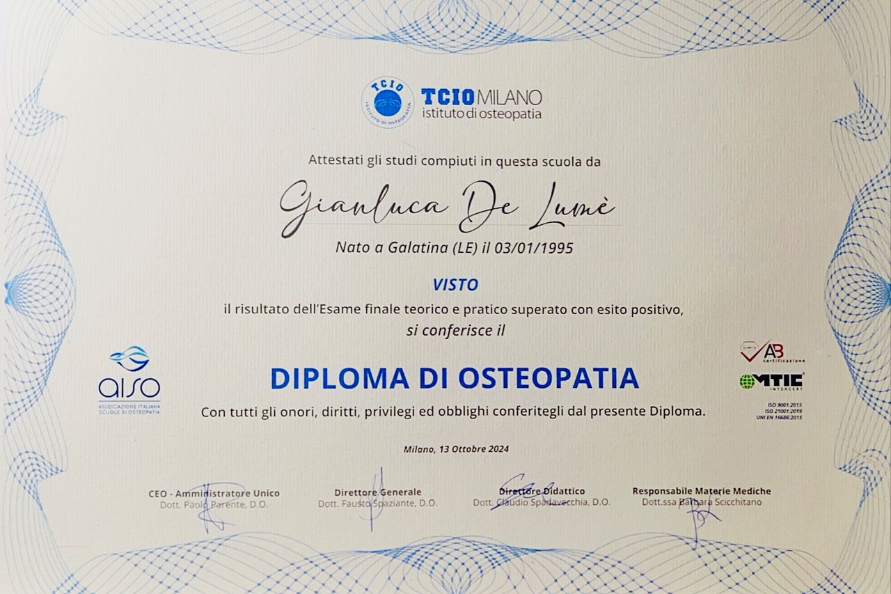 Sono Gianluca De Lumè, Osteopata D.O. e chinesiologo sanitario.