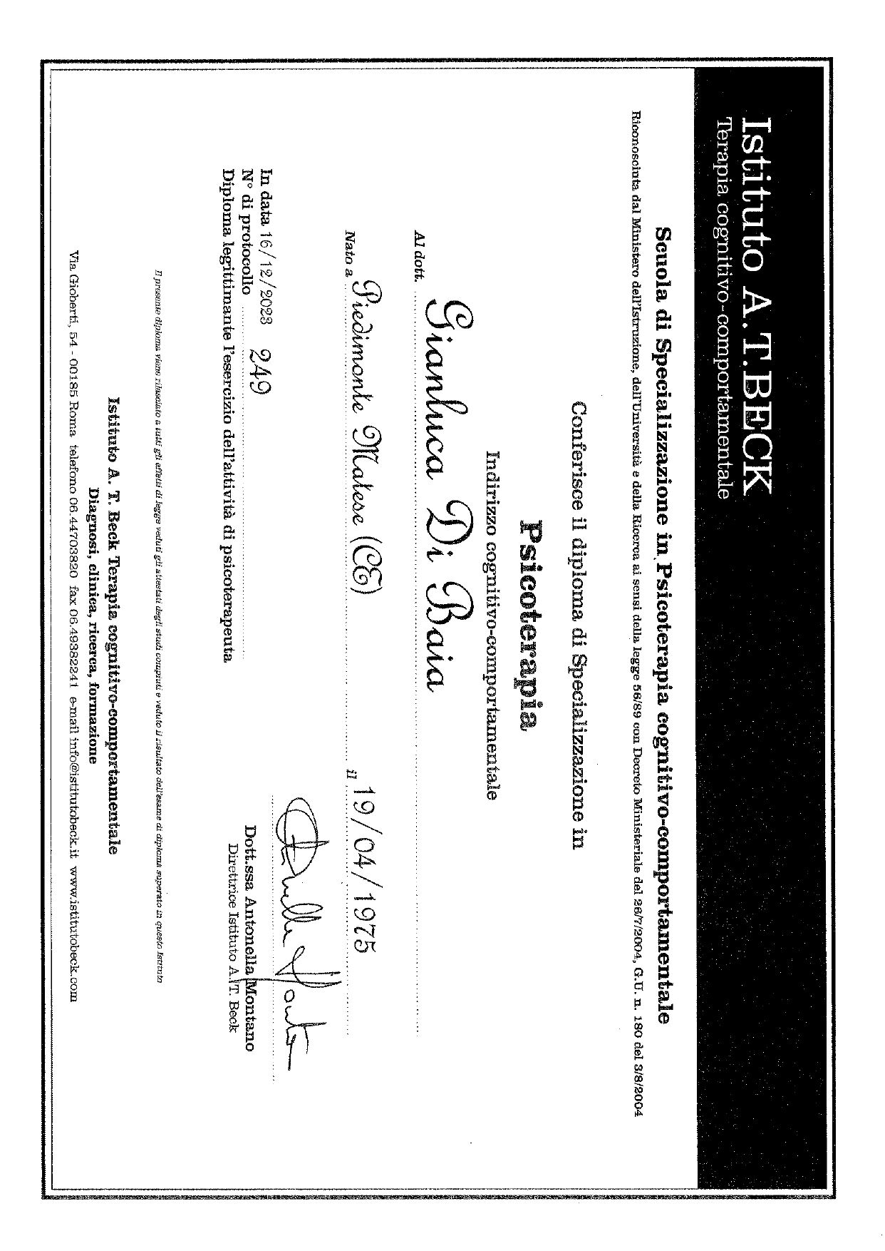 Sono Gianluca Di Baia, Psicologo e Psicoterapeuta Cognitivo Comportamentale