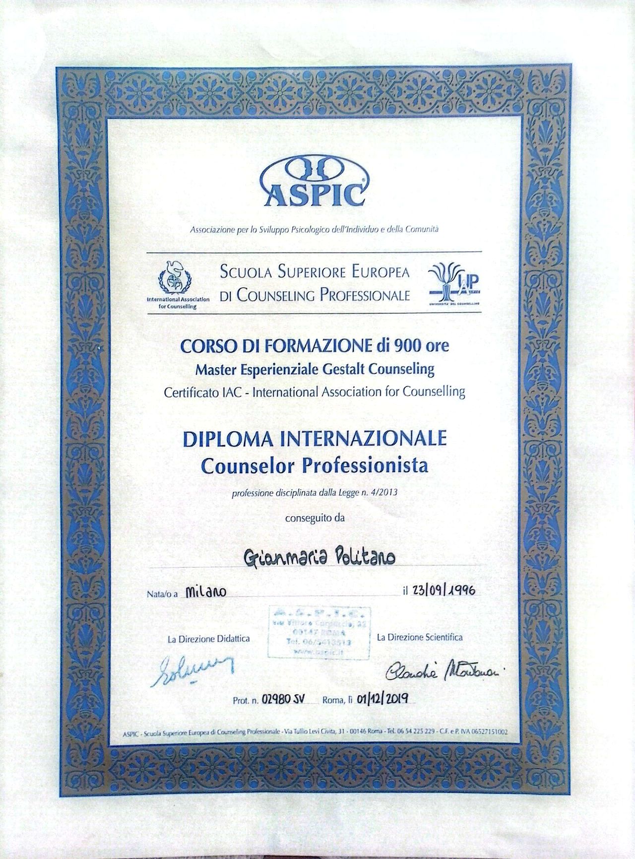 La mia formazione si è arricchita attraverso un percorso come counselor, che ha contribuito a consolidare una visione ampia e integrata della relazione d’aiuto. Parallelamente, sono specializzando in psicoterapia cognitivo-comportamentale. Ho inoltre acquisito una formazione specialistica in ambito neuropsicologico, che mi consente di integrare nella pratica clinica competenze nella valutazione del funzionamento cognitivo e psicodiagnostico, in un’ottica rigorosa e scientificamente fondata.