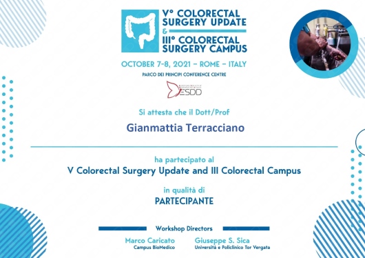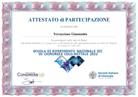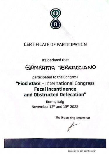 Con il ruolo di Faculty ho partecipato a numerosi congressi scientifici e sono membro della prestigiosa Società Unitaria di Coloproctologia (SIUCP) presso la quale faccio parte del gruppo scientifico responsabile nella elaborazione delle prossime linee guida societarie sulla Sindrome da defecazione ostruita.